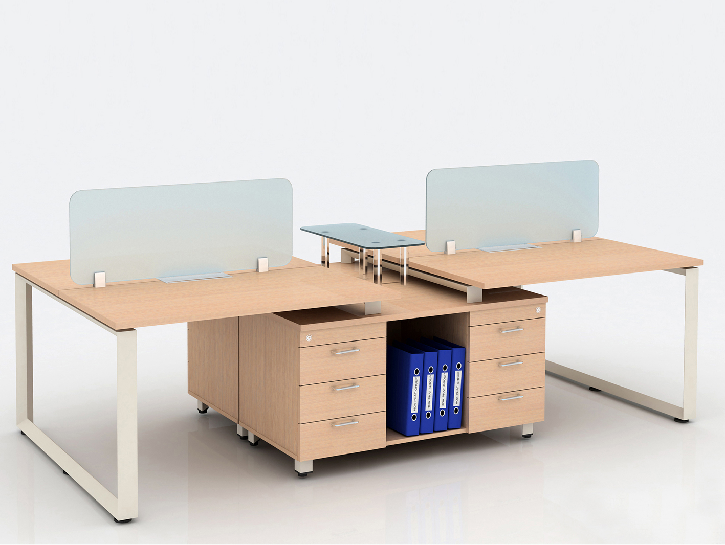 Mặt bằng gỗ Melamine và có vách ngăn kính trên mặt bàn.