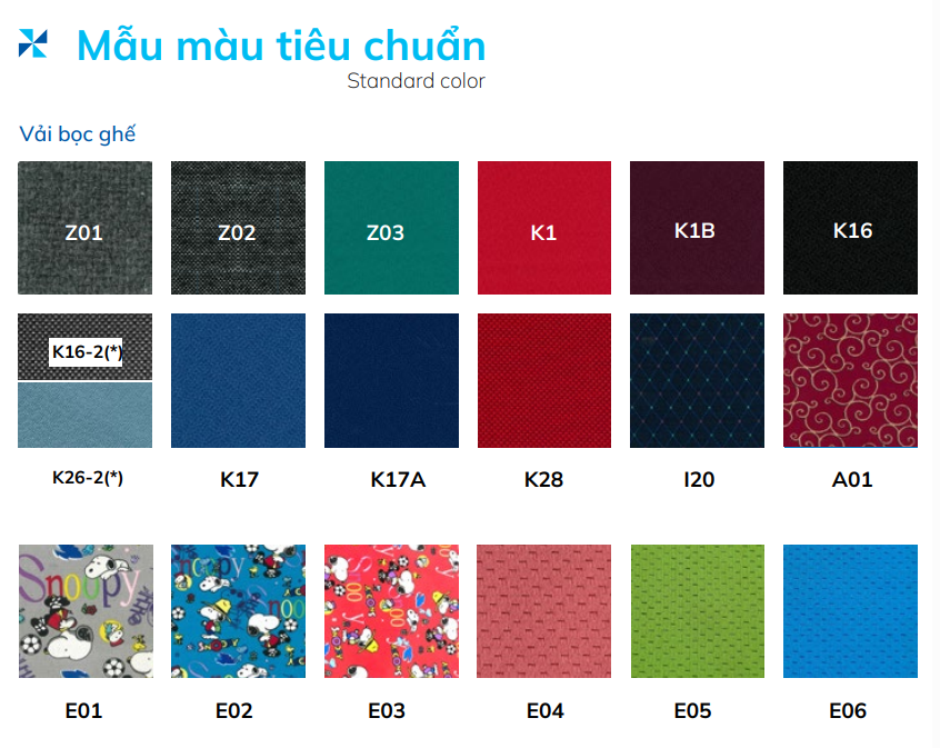 ►Màu sắc : Mẫu ghế văn phòng này có phần nhựa màu đen, phần nỉ có nhiều màu để lựa chọn